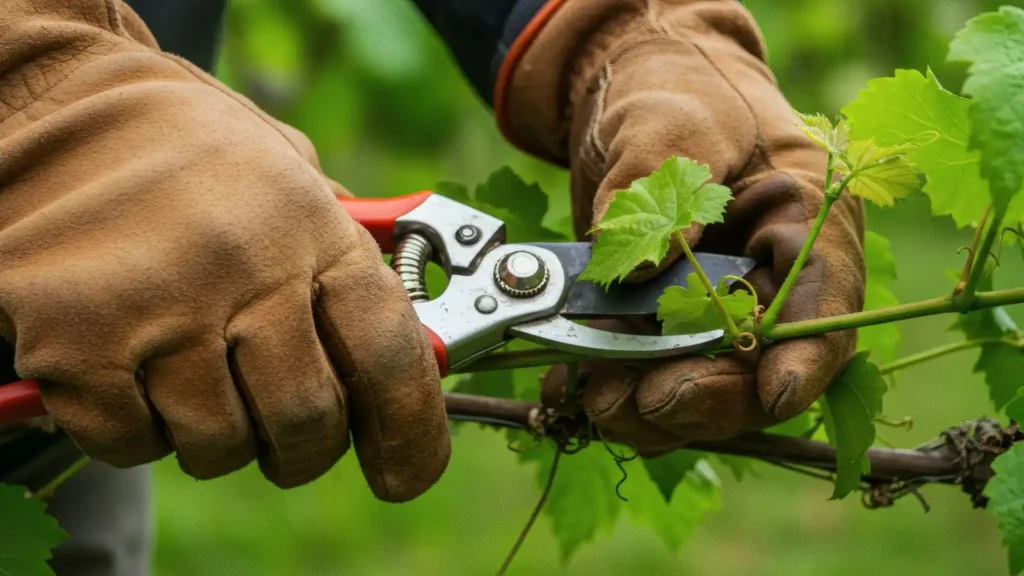 Con la brotación en marcha, el viñedo entra en una fase de crecimiento rápido. Los pámpanos se alargan, aparecen las primeras hojas y la planta desarrolla su estructura vegetativa. Este crecimiento requiere seguimiento constante. El objetivo es mantener el equilibrio entre vigor y producción, con la poda en verde. En primavera se realizan trabajos como el desbrote que es la eliminación de brotes innecesarios, la selección de pámpanos mejor posicionados, los primeros ajustes de vegetación y el control del desarrollo para favorecer la aireación. Estas labores permiten dirigir la energía de la planta hacia los brotes más adecuados, favoreciendo una mejor distribución de los futuros racimos. El equilibrio en esta fase influye directamente en la calidad de la uva, mejor exposición al sol, mayor sanidad y una maduración más homogénea.