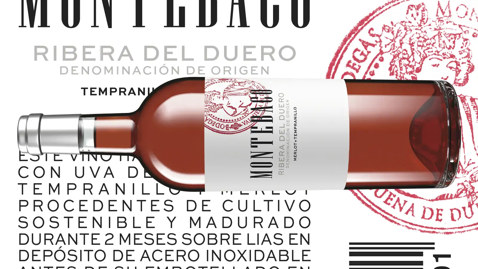 Montebaco Rosado ha sido elaborado con uvas de la variedad Merlot (entre 25% y 50%) y el resto Tempranillo. Fermentado en barrica de roble francés y madurado durante 2 meses sobre lías en depósito de acero inoxidable antes de su embotellado.