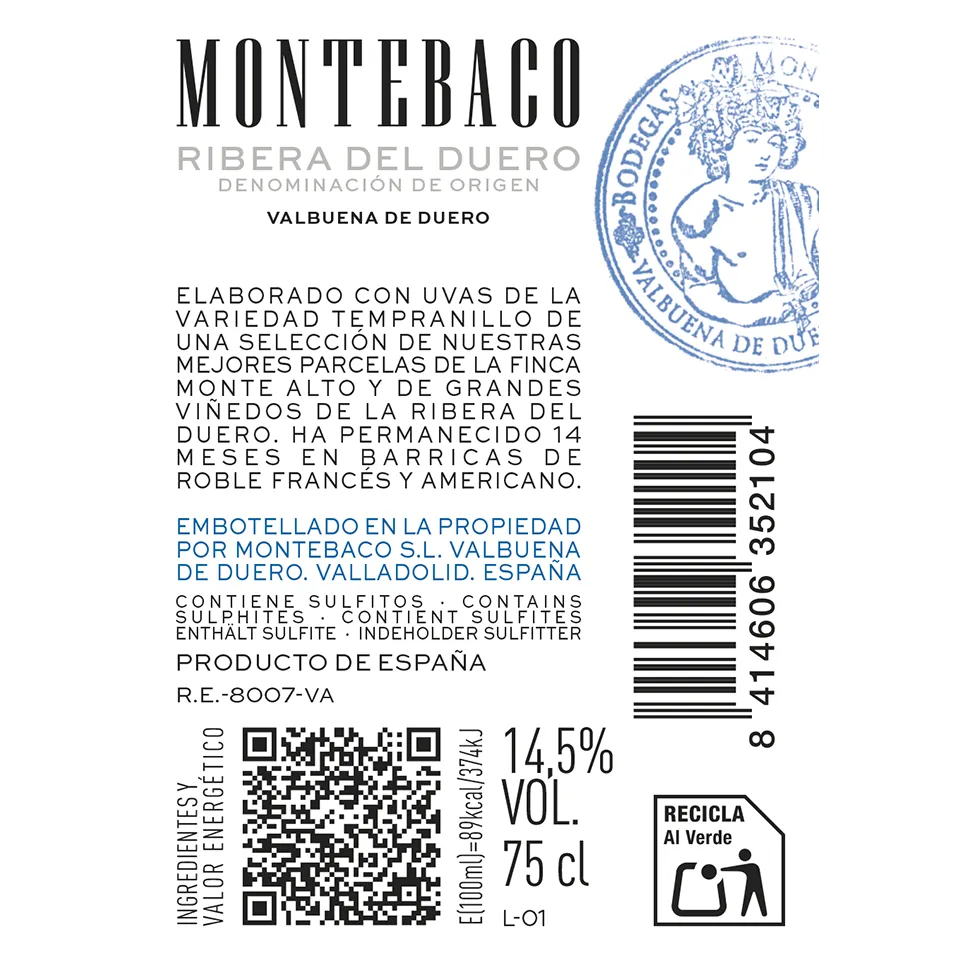 Crianza en barrica 13-15 meses. 100% Tempranillo