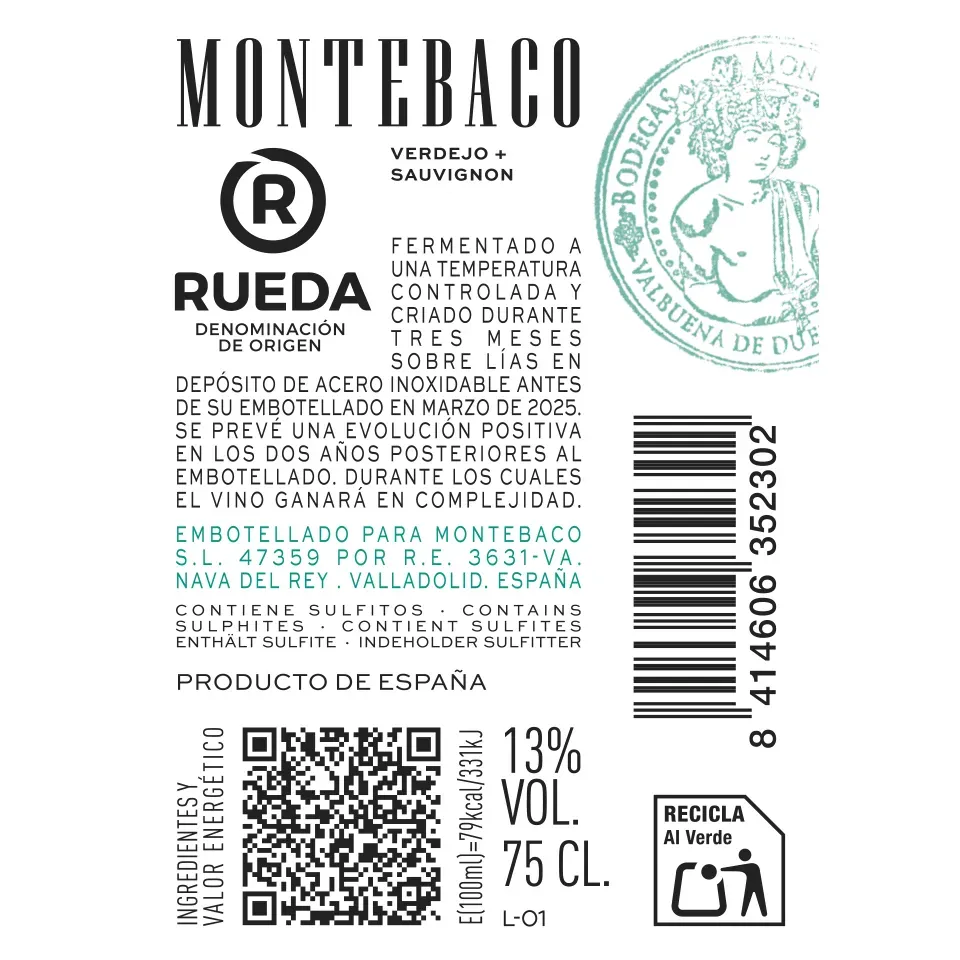 Montebaco Verdejo+Sauvignon es un blanco elaborado con uvas de la variedad Verdejo y Sauvignon seleccionadas en la Denominación de Origen Rueda.